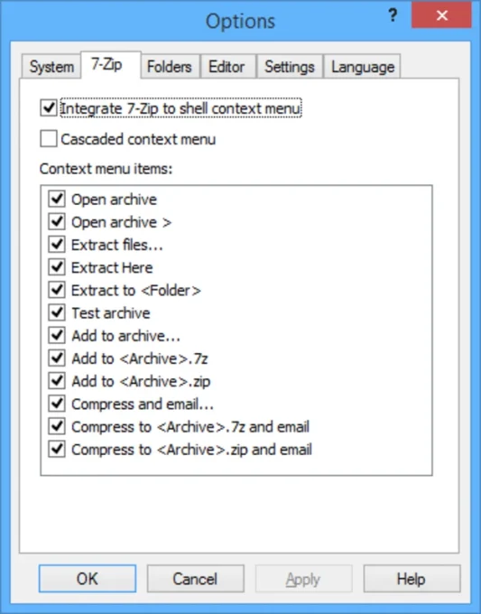 - مساعدة: إذا واجهت أي مشكلة أثناء تنزيل برنامج 7-zip على ويندوز 10 أو كنت ترغب في التواصل مع خدمة الدعم الفني للبرنامج يمكنك استخدام هذا الخيار للتواصل معهم بسهولة كما يمكنك أيضًا الحصول على بعض المعلومات العامة حول البرنامج التي ستساعدك بالتأكيد في التعرف على 7-zip بشكل أفضل.
