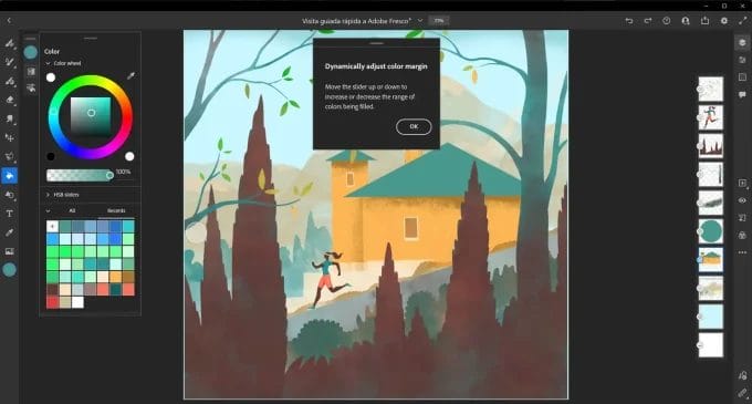 - واجهة فريدة: تعتبر واجهة Adobe Fresco المفعلة مدى الحياة واجهة استثنائية للغاية مما يجعلها متاحة لجميع المستخدمين للاستفادة منها بكل يسر ودون أي صعوبات كما أن الواجهة تناسب جميع الفئات لتسهيل استخدامها، يمكنك متابعة الموضوع للتعرف على الواجهة بشكل أعمق من خلال الشرح أدناه.