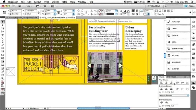- التصميم الاحترافي: يُشيد الجميع ببرنامج Adobe InDesign كأداة فعالة لتصميم وإنتاج المطبوعات والمنشورات الإلكترونية، مثل الكتب والمجلات والكتيبات والنشرات والملصقات والمواد الترويجية الأخرى بالإضافة إلى صفحات الويب الاحترافية، يوفر البرنامج إمكانية إدراج الصور والرسومات أو معالجة النصوص مع أدوات متخصصة للعمل على النصوص بشكل احترافي ومتميز ويتكامل بشكل سلس مع جميع برامج أدوبي لاستيراد وتصدير الملفات المختلفة.