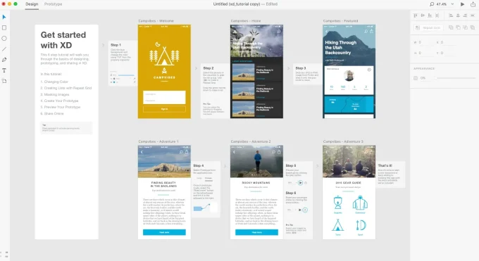 - واجهة بسيطة: لن يحقق البرنامج الذي يعتمد على تصميم الواجهات نجاحه إلا بوجود واجهة احترافية رائعة، وبالفعل تعتبر واجهة البرنامج واحدة من الواجهات السهلة والبسيطة في الاستخدام، وذلك لأن مطوري برنامج أدوبي XD بذلوا جهدهم لتقديم واجهة سهلة الاستخدام وجميلة في عرض الخدمات والأدوات وغيرها.