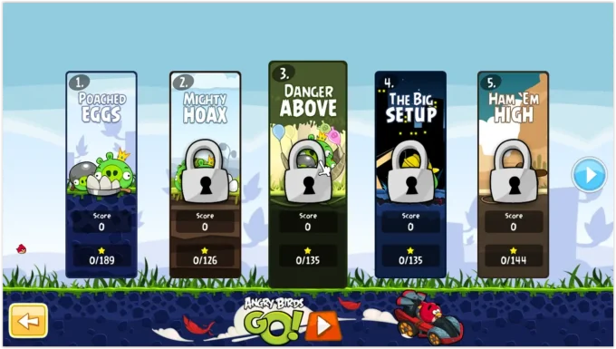- أصبح بإمكانك الآن اختيار الطيور حيث يمكنك في بداية كل مرحلة اختيار جميع الطيور المتاحة لديك، ستجد تلك الطيور على بطاقات أسفل الشاشة يمكنك الضغط عليها واستخدامها، وهذه الخطوة تأتي من شركة روفيو لمنح اللاعبين مزيدًا من الحرية في اختيار الطائر الذي يرغبون في استخدامه أثناء القذف.