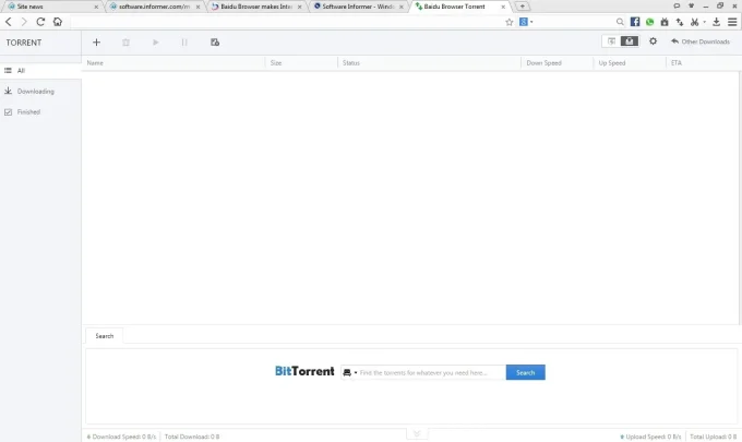 - مدير التحميلات: كما ذكرت سابقاً يوفر لك متصفح سبارك Baidu Spark Browser أداة تدير جميع تحميلاتك وهي المسؤولة عن تنزيل كل ما تريده من خلال (متصفح سبارك)، هذه الأداة تشبه كثيراً البرامج المعروفة لتحميل الملفات من الإنترنت وأريد أن أكون صريحاً فهي مميزة حقاً وتحتوي على العديد من الخصائص الرائعة، لكن للأسف لا يمكنك الاعتماد عليها بشكل كامل لتنزيل ما تريد وذلك لأن سرعة التحميل فيها تكون أقل قليلاً مقارنةً ببعض برامج التحميل الأخرى مثل إنترنت داونلود مانجر.