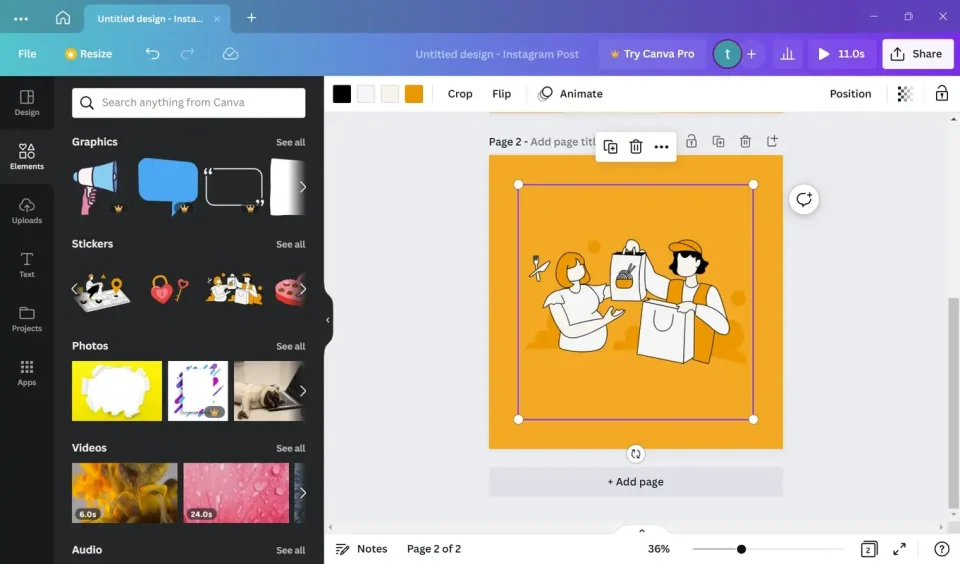 - يوفر لك برنامج Canva Pro إمكانية تصميم الفيديوهات مع الرسوم المتحركة الرائعة؛ وتستطيع عبره اختيار الأبعاد التي تودها.