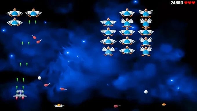 لأنه في المستقبل القريب ستتعرض الأرض لهجوم من دجاج من مجرة أخرى يسعى للانتقام من البشر بسبب اضطهادهم لدجاج الأرض، مصير العالم يعتمد عليك (أو على الأقل ستحصل على وجبة طازجة بعد أن تنتصر عليهم)، في هذه النسخة الحديثة من كلاسيكيات الثمانينيات يمكنك مواجهة الغزو بمفردك أو مع صديق آخر، حيث تتيح اللعبة اللعب للاعبين اثنين.