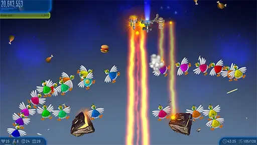 استمتع بلعب Chicken Invaders 5 لساعات طويلة في أوقات فراغك مع مغامرات لا تنتهي ضد العدو الرئيسي وهو الدجاج، يمكنك أيضاً تنزيل لعبة الفراخ 5 من الفضاء التي تهدف إلى غزو الأرض، فقط قم بتوجيه أسلحتك نحو تلك الدجاجات وابدأ في القضاء عليها حتى تتخلص منهن تماماً ولا تمنحهن فرصة للوصول إلى الأرض، على الرغم من جميع المميزات التي تقدمها من حيث الرسومات والمغامرات الشيقة إلا أنها مجانية تماماً للتنزيل ومتاحة بحجم صغير ومتطلبات تشغيل بسيطة، ستشكل هذه اللعبة أفضل وسيلة للترفيه في الأوقات التي لا يتوفر فيها اتصال بالإنترنت حيث لا تتطلب الاتصال بالإنترنت لتشغيلها مما ساعد على انتشارها بسرعة بين ملايين المستخدمين حول العالم.