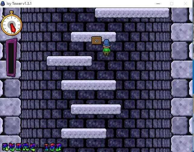تحميل لعبة Icy Tower للكمبيوتر المعروفة في العالم العربي بـ لعبة (الرجل النطاط القديمة)، تعتبر واحدة من الألعاب الكلاسيكية التي تحمل أسلوبًا فريدًا وفكرة كانت جديدة عند إصدارها، تعتمد اللعبة على سرعة رد فعل اللاعب ومهارته في القفز على المنصات حيث ترتفع الكاميرا تلقائيًا نحو القمة وعليك التكيف مع هذه الحركة من خلال القفز المتكرر، يجب أن تكون حذرًا من السقوط إلى الأسفل حتى لا تفقد الإنجازات التي تسعى لتحقيقها، اللعبة لا نهائية مما يعني أنه لا يمكنك الوصول إلى القمة، إذ تركز الفكرة الأساسية على تحقيق أكبر عدد من الإنجازات، يمكنك جمع بعض العناصر التي تعزز من ارتفاع قفزاتك لتجاوز عدد أكبر من المنصات في كل قفزة، لذا عليك تحقيق توازن بين القفز وسرعتك لتفادي الاصطدام بالجدران والسقوط في الهاوية.