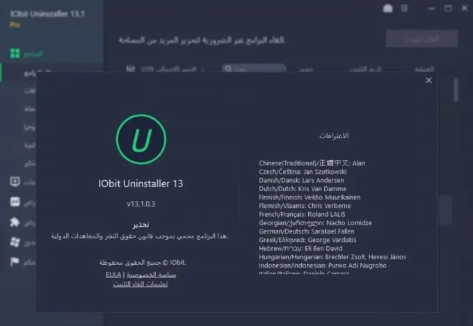 - دعم اللغات: من الرائع أن برنامج حذف البرامج من جذورها متاح باللغة العربية مجاناً للكمبيوتر ويدعم مجموعة كبيرة من اللغات العالمية، يمكنك استخدام البرنامج بأكثر من 30 لغة بما في ذلك العربية والإنجليزية، يمكنك أيضاً تغيير لغة البرنامج حسب رغبتك من قسم الإعدادات الخاص باللغات حيث يمكنك التعديل واختيار أي لغة بكل سهولة، يتم تنزيل البرنامج باللغة الإنجليزية وإذا كنت ترغب في تغييرها، عليك القيام بذلك يدوياً من الإعدادات.