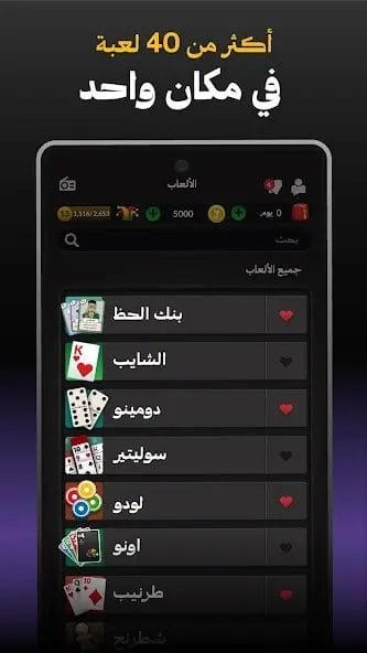 تحتوي اللعبة على العديد من المؤثرات الصوتية الرائعة التي تضفي حماساً إضافياً على تجربة اللعب كما تمتاز بواجهة ذات تصميم جميل مع رسوم وألوان جذابة، تدعم اللعبة كلاً من اللغة الإنجليزية والعربية مما يسهل على المستخدمين فهمها دون حاجة لشرح مفصل، تضم اللعبة مجموعة متنوعة من ألعاب الورق أو الكوتشينة الشهيرة في الدول العربية ويتم إضافة المزيد من الألعاب بمرور الوقت.