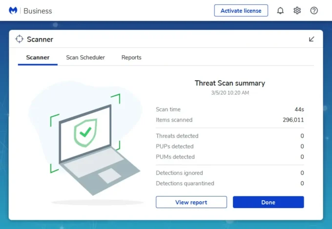 - سهولة الاستخدام: بفضل التصميم البسيط والواجهة السهلة يستطيع معظم المستخدمين البدء في استخدام برنامج Malwarebytes دون أي عناء.