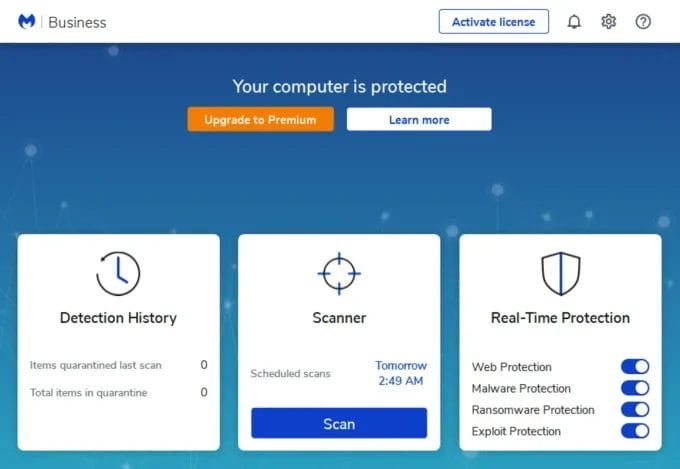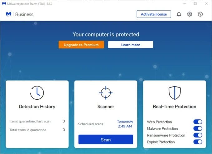 - الحماية الفورية: النسخة المدفوعة من malwarebytes anti-malware توفر حماية فورية وهي خاصية تتيح للبرنامج رصد نشاط النظام بشكل دائم ومنع التهديدات قبل وصولها إلى جهازك.