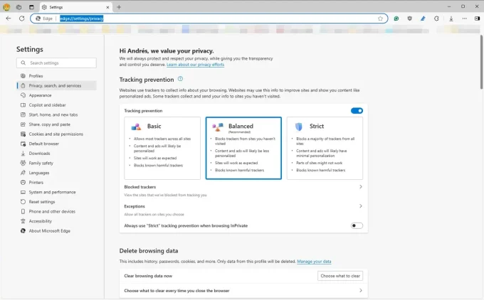 - الوضع المخفي: يعتبر هذا الأمر ضرورة ملحة في جميع المتصفحات، لذا حرص المطورون على تضمينه في النسخة الجديدة من مايكروسوفت إيدج مما يتيح للمستخدمين تفعيل وضع (InPrivate) للتصفح بحرية كاملة دون تسجيل أي معلومات حول سجل البحث أو سجل المشاهدة كما يتميز هذا الوضع بقدرته على منع خدمات التتبع وكشف الموقع الجغرافي لكافة المنصات المفتوحة داخل المتصفح.