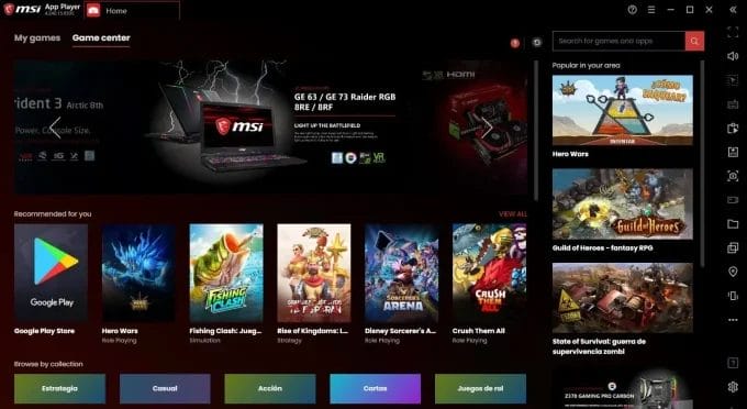 - بعد ذلك سيفتح أفضل محاكي ألعاب MSI App Player أمامك وستلاحظ ظهور الواجهة الرئيسية للمحاكي مما يعني أنه يمكنك استخدامه والتعامل معه كما تريد دون مواجهة مشاكل على الإطلاق.