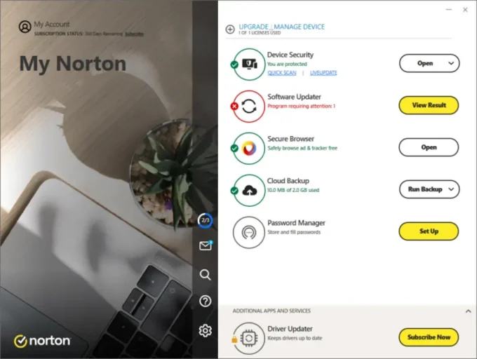 مع استمرار تطور الإنترنت والتكنولوجيا بالإضافة إلى وجود قراصنة الكمبيوتر الذين يعملون على تطوير أساليب وثغرات لاختراق الأجهزة تم إطلاق برنامج نورتون 360 لمكافحة الفيروسات الذي يدعم جميع إصدارات نظام ويندوز، يعتبر هذا البرنامج الأفضل في مجال حماية الأجهزة من الفيروسات حيث يتميز بسهولة الاستخدام ويقدم أربع مستويات من الحماية من أجل مواجهة كافة التهديدات والهجمات مما يحمي أجهزة الكمبيوتر من مخاطر الإعلانات والتنزيلات من الأنترنت وبرامج مشاركة الملفات المستخدمة على الأجهزة.