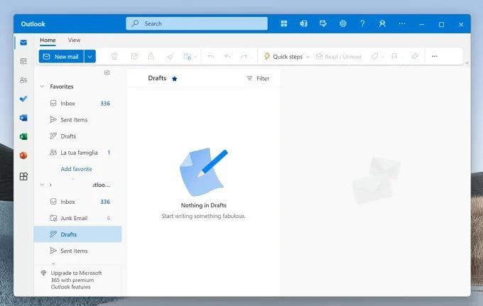 - إذا كنت ترغب في إرسال رسالة عبر أوت لوك إلى أي بريد إلكتروني آخر ستجد زرًا خاصًا لبدء الرسالة الجديدة في الصفحة الرئيسية موجودًا في أسفل الجهة اليسرى، وعند الضغط عليه، يمكنك بسهولة كتابة رسالة جديدة.