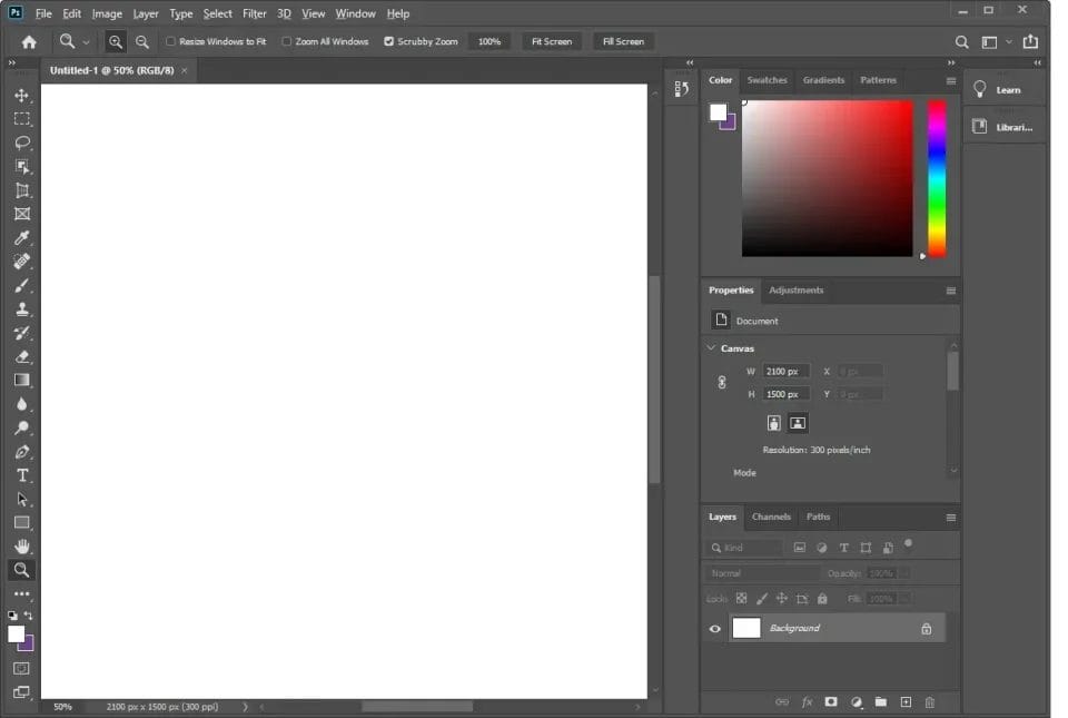 تشتمل الجهة اليسرى من شاشة بدء الاستخدام على عدد كبير من الأدوات، التي لكل منها عمل أو وظيفة بعينها، وكلها مهمة جدًا من أجل الحصول في النهاية على صورة مميزة بشكل احترافي أو تصميم رائع، ولكن قبل أن يبدأ المستخدم في عمل التصميم، عليه أن يتعرف على وظيفة أو آلية عمل كل أداة من أجل عدم إهدار الوقت في التعرف على كل منها أو في التجربة.