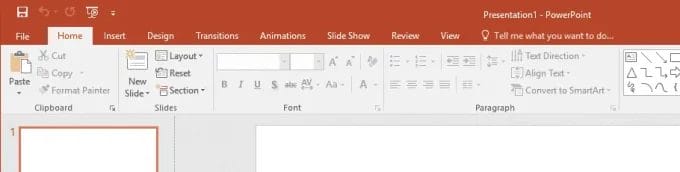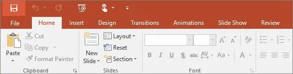 - يمكنك استخدام الأدوات المتوفرة في القسم الأول ضمن علامة التبويب لنسخ أو لصق النصوص وإضافتها إلى الشريحة كما يمكنك من نفس القسم تخطيط الصفحة أو إعادة ضبطها مرة أخرى أو إضافة شرائح جديدة.