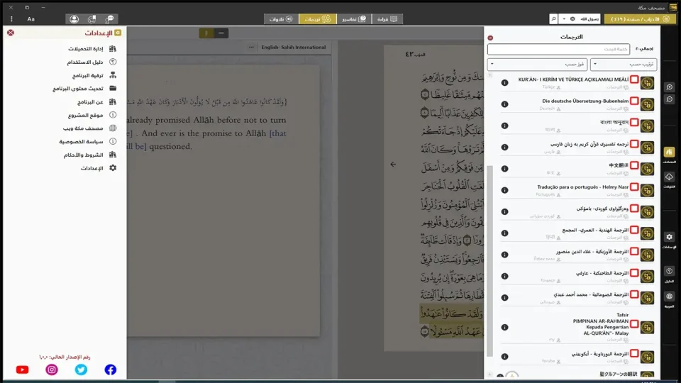 يحتوي على العديد من اللغات لقراءة المعاني والتفاسير