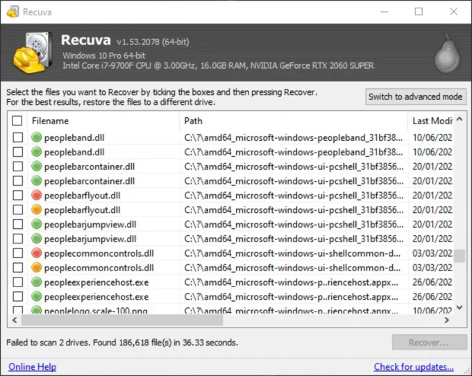 حلول الأخطاء الشائعة في Recuva