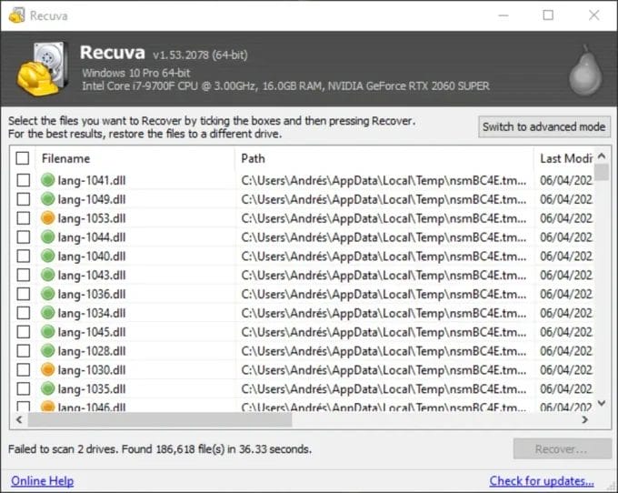 حلول الأخطاء الشائعة في Recuva