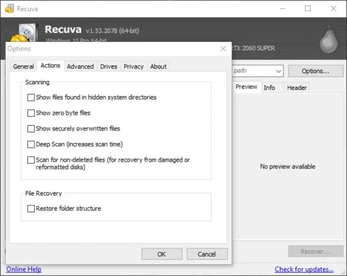 الأمان والخصوصية عند إستخدام Recuva