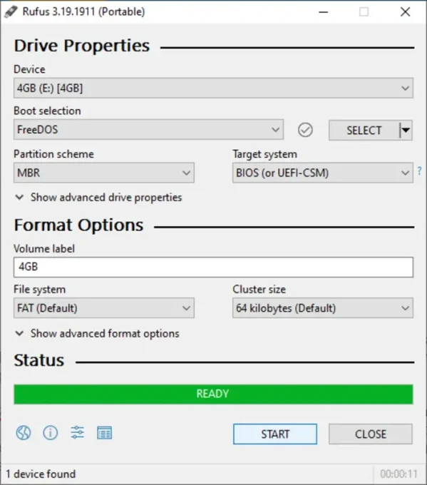 - كما يدعم روفوس (Rufus) جميع إصدارات الويندوز: لاستخدام أحدث إصدار من هذا البرنامج يتعين عليك أن تمتلك نسخة من ويندوز 7 أو أحدث (مثل ويندوز 11، 9، 10 أو 8)، ليس من الضروري أن تكون النسخة التي على جهاز الكمبيوتر لديك 32 بت أو 64 بت حيث إن برنامج روفوس سيعمل على أي من النسختين لكن الشرط الأساسي هو أن تكون نسخة الويندوز لديك 7 أو أحدث لضمان عمل البرنامج بشكل صحيح وسليم على جهازك.