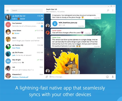 - الدردشة الفورية: من ضمن أهم مميزات تليجرام للكمبيوتر هو أنه يمكنك إرسال الدردشة الفورية بشكل مباشر بدون مواجهة أي مشكلة على الإطلاق، وخصوصًا أنه يتم إرسال الرسالة التي تقوم باستخدامها طالما أن الإنترنت لديك يعمل بالفعل.