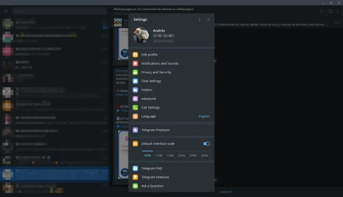- حجم الخط: بعد تثبيت تطبيق تليجرام على الكمبيوتر يتاح لك شريط للتحكم في حجم الخط مما يتيح لك اختيار الحجم المناسب لقراءة الرسائل وبالتالي يمكن للمستخدم ضبط هذا الحجم بما يتناسب مع قدرته على القراءة.