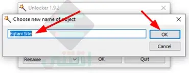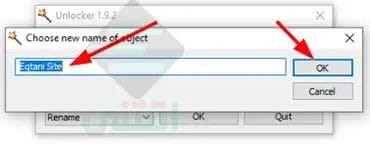 - أولاً، يجب عليك فتح البرنامج واختيار الملف حيث ستظهر لك نافذة، اضغط على خيار (اختر من القائمة) وستجد ضمن القائمة خيار (إعادة تسمية)، باستخدام خيار إعادة التسمية يمكنك تغيير اسم الملف قبل نقله وهذه العملية تعتبر ضرورية جداً لأنها تساعدك في العثور على الملف بسهولة، انقر عليه وستظهر لك نافذة تطلب إضافة الاسم الجديد ثم انقر على (موافق).