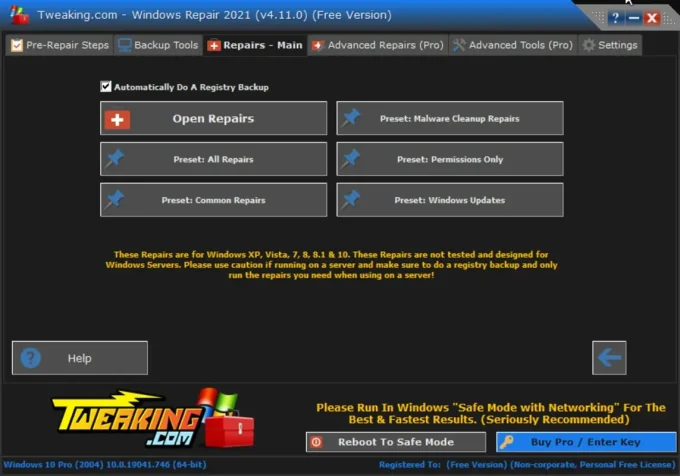 خصائص برنامج صيانة الويندوز Windows Repair المتوفر مجانًا بالكامل