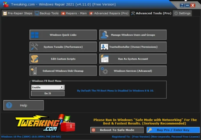 - تنوع الأدوات: يتيح لك برنامج إصلاح الويندوز مجموعة واسعة من الأدوات المختلفة التي يمكنك استخدامها حسب احتياجاتك لمساعدتك في تحقيق ما تريده، وعلى الرغم من أن هذه الأدوات مدفوعة وغير مجانية إلا أننا نقدم لك روابط آمنة تمامًا للاستخدام تتضمن مفاتيح تفعيل يمكنك الاستفادة منها لتفعيل هذه الأدوات المدفوعة وكأنها مجانية تمامًا.