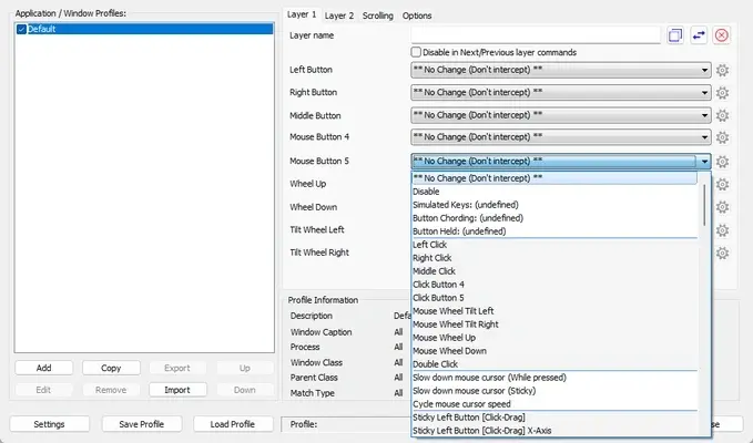 - دعم جميع أنواع الفأرات: إذا كنت تستخدم فأرة غير معروفة ولا تأتي مع برنامج خاص لتعديلها أو إذا كنت ترغب في إضافة ميزات جديدة إلى فأرتك بغض النظر عن نوعها يمكنك الاستعانة بهذا البرنامج الذي يدعم كل الفئران المتاحة سواء كانت USB أو لاسلكية أو حتى الفأرات الخاصة بأجهزة الكمبيوتر المحمولة، ولا يتطلب البرنامج بعد تنزيله تثبيت برامج أخرى لتعريف الفأرة لأنه يحتوي على ملفات مدمجة لكل أنواع وأشكال الفئران المتوفرة.